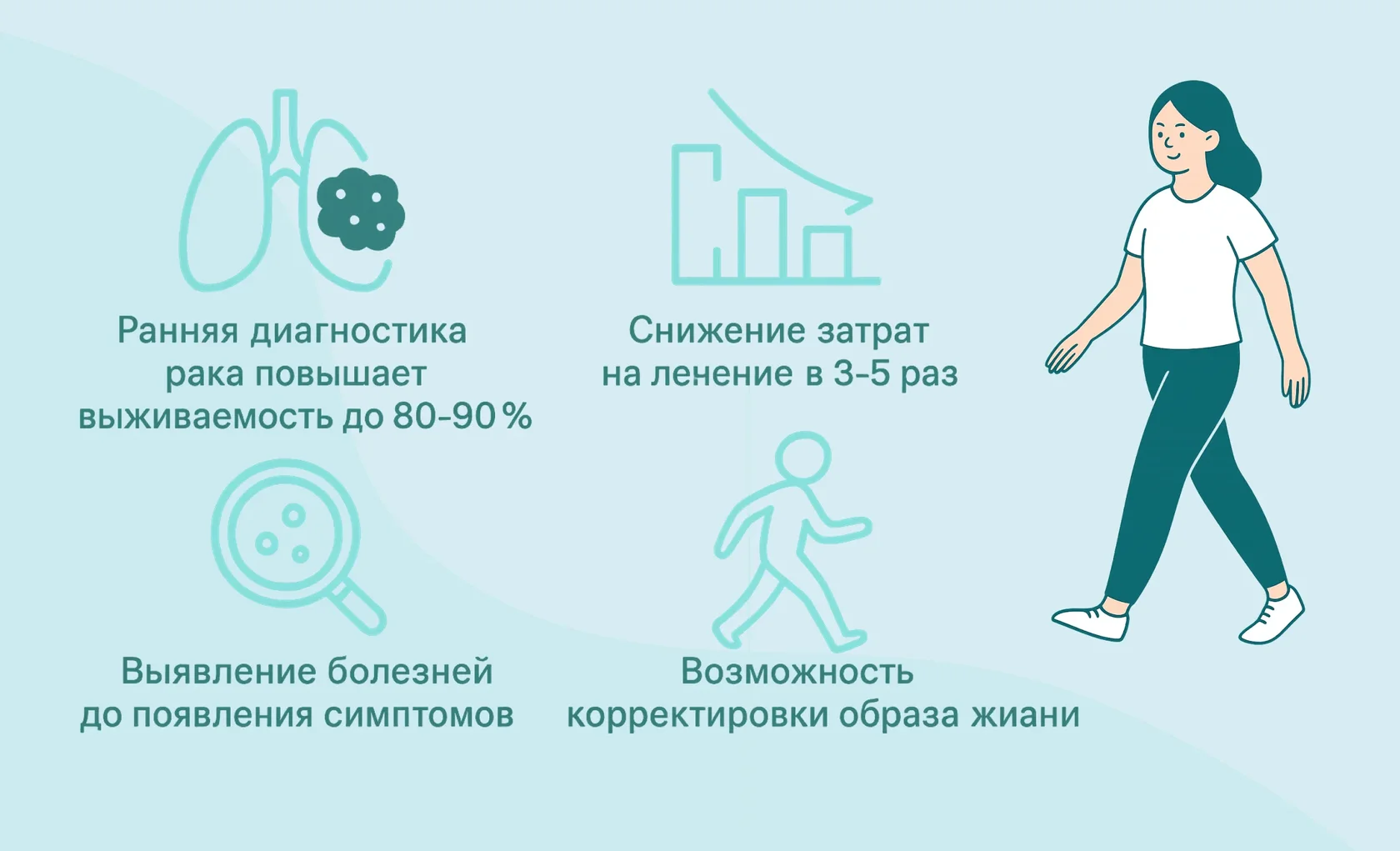 - Раннее выявление заболеваний в латентной фазе способствует быстрому вмешательству, снижая заболеваемость и смертность